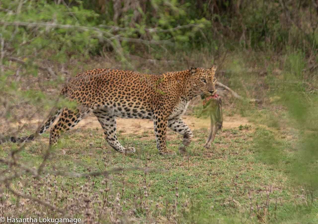 In July 2020, there was a fantastic sighting of her at the Darshana Wewa Junction, carrying a newly killed wild boar piglet. In September 2020, she was seen frequenting the Mōdharagala area with her cubs (from the 2019 litter, who were fully grown at the time). At the end of 2020, they separated and for a few months, there were no records of this female until April 2021 when we saw her at Y-junction. A few months later in September 2021, she was seen at Warahana bungalow road mating with Medha Para 2:3 male(a.k.a ‘J’)
